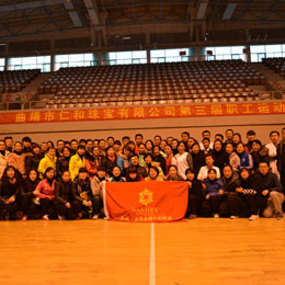 “进无止境,勇攀高峰”弘扬体育精神,仁和珠宝公司于2014年11月17--18日,在曲靖体育馆举行了“仁和珠宝第三届职工运动会”。本次运动会分四个组,有130余名员工参加。共有接力赛、篮球、两人三足、无敌风火轮.....等等七个单项,在比赛中,参赛队员为了拿到更好的成绩而努力着,但是更多的是从中体会
