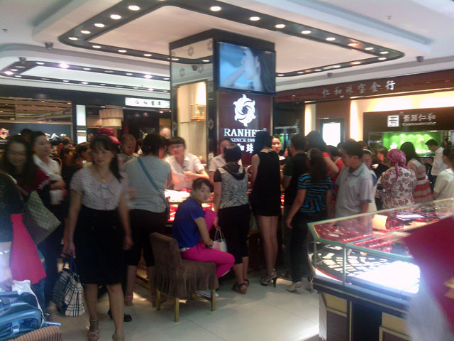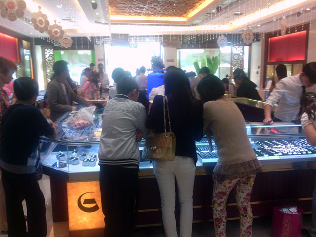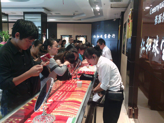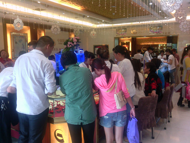 中国黄金店七夕情人节店内购物的顾客