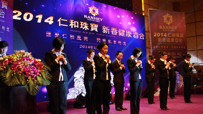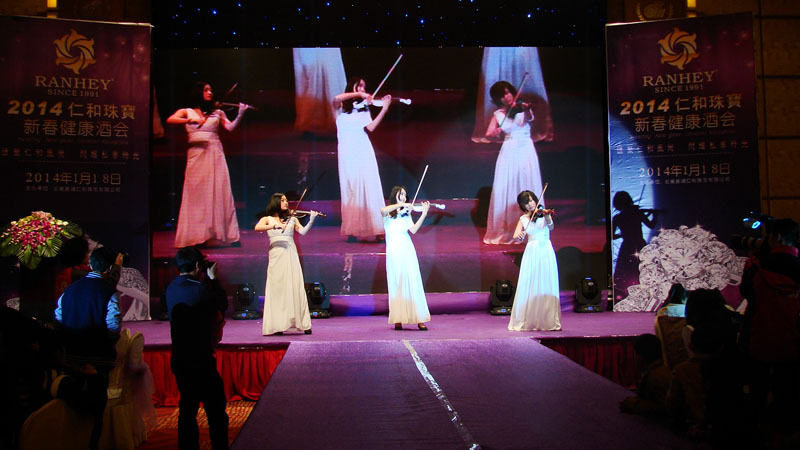 又是一年好光景,新朋旧友聚仁和,我们告别了精彩纷呈的2013,迎来了崭新的2014,非常高兴能与各位新老顾客欢聚一堂,共同开启我们新的一年、新的希望、新的旅程、新的梦想!伴随着头盘展示的的开始,我们的晚宴也正式开始,随着迈克尔杰克逊模仿者表演、沙画表演、小邓丽君的献唱、模特走秀、电声弦乐的表演、一起跳起欢快的骑马舞、抽奖环节等节目的表演,将整个酒会逐步的推向了高潮,所有参加酒会的客户都度过了一个美好的夜晚。最后庆祝2014年仁和珠宝新春健康酒会取得圆满成功!