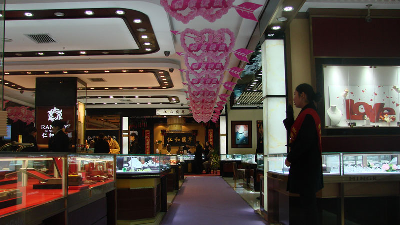 2014年2月14日,这一天是关于爱、浪漫、鲜花、巧克力的节日,也是关于珠宝的节日,很多有情人都选择在这一天送他珠宝首饰,表现对他的爱意,诠释着两人的浪漫。在这个充满爱、浪漫、鲜花的节日里,仁和珠宝各大营业网点也精心装扮,披上爱的嫁衣,以实际行动迎接每一位顾客并送上最真诚的祝愿,愿天下有情人终成眷属,执子之手,与子偕老。