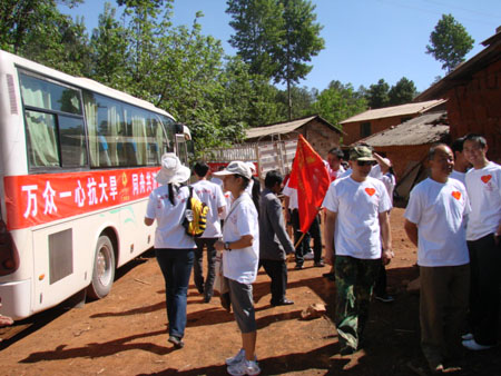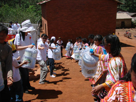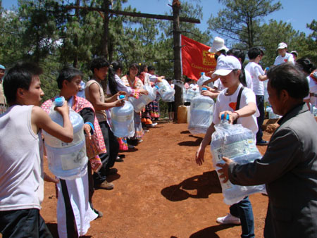 2010年5月8日,曲靖市仁和珠宝经过曲靖市红十字会介绍为沾益县盘江老蜂窝村捐献10000升饮用山泉水和书包,本,笔等等,得到了老蜂窝村村民的热情接待。不时有村民上来感激的握着我们的手,用他们并不熟练的普通话对我们说,谢谢全社会的爱心人士,有了大家的支持他们一定会渡过这个难关... 归途中,同行的工作人员大都沉默不语,我们期待能有更多有爱心的人加入我们的行动,为抗旱救灾出一份力,我们祈祷老天能被我们的行为感动,被灾区群众的意志所征服,早日降下甘露! 再见了 ,盘江老蜂窝村~ 我们期待下次的相遇 ,会让大家看到一个重拾“青山绿水”的你!