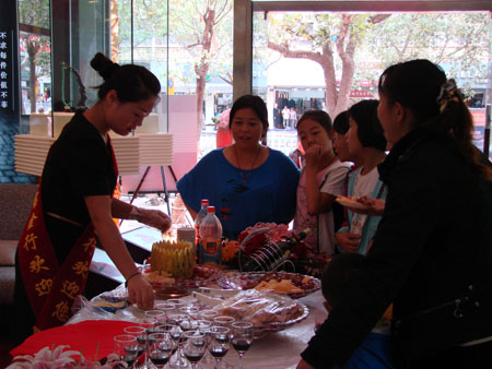 现场服务人员为顾客切水果