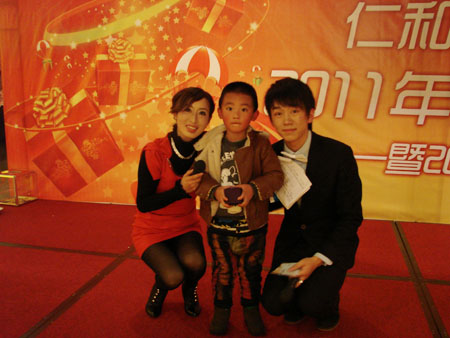 主持人和中奖小嘉宾合影